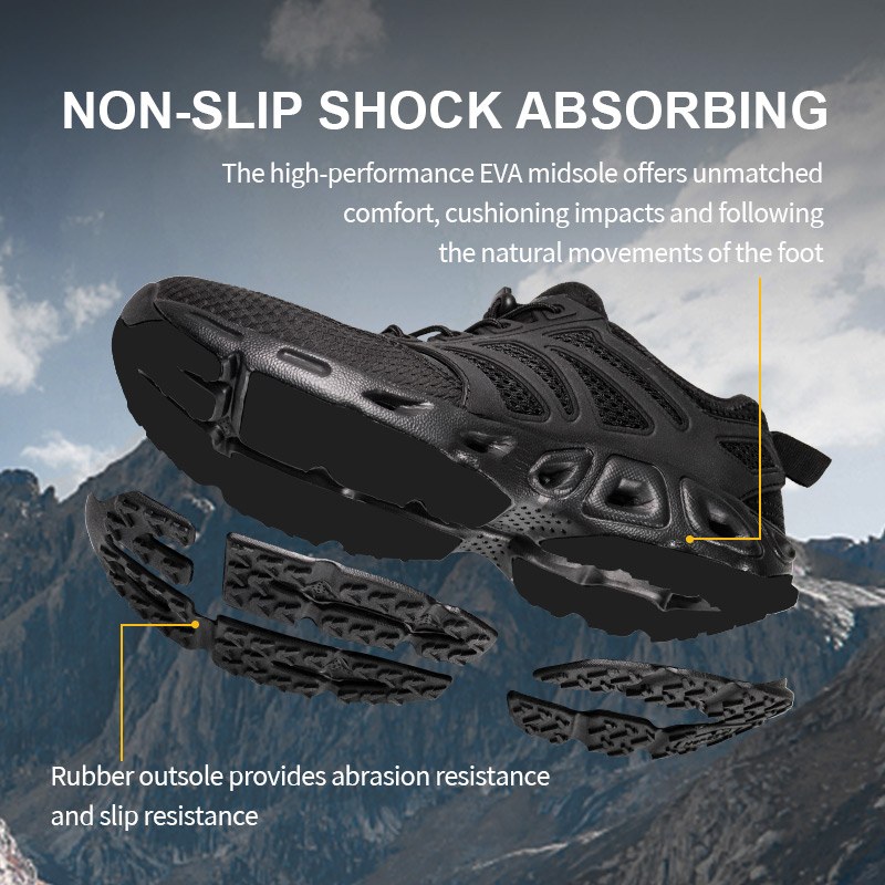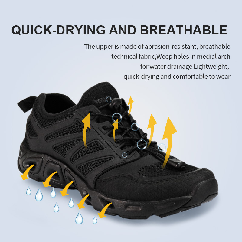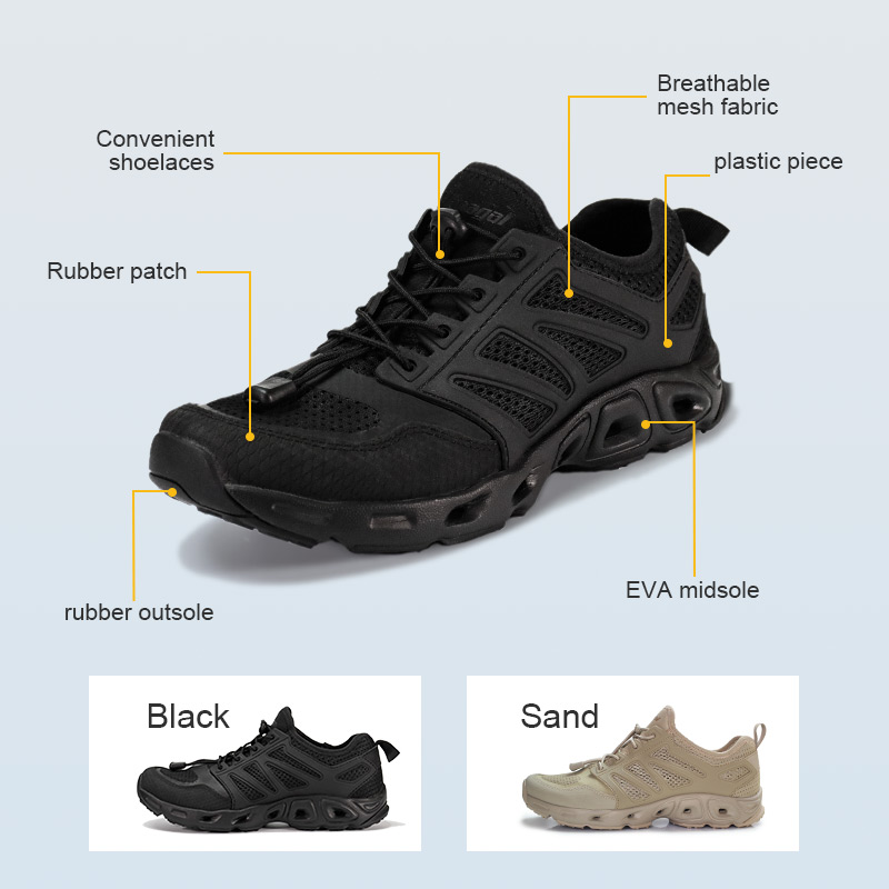 - Lengvas ir kvėpuojantis - Drenažas ir greitas džiūvimas - EVA amortizatorius tarppadis - Patogus batų raištelių dizainas