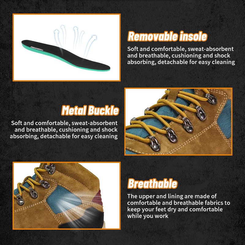 Viršutinė dalis ir pamušalas yra pagaminti iš patogių ir kvėpuojančių audinių, kad jūsų kojos būtų sausos ir patogios dirbant.