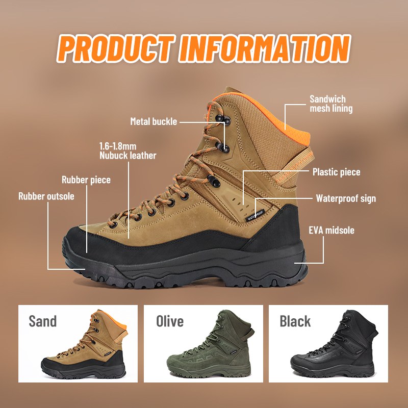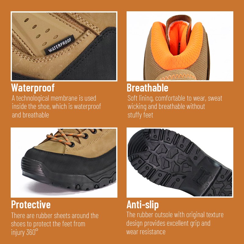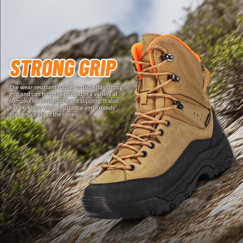 Šiuos „Strong Grip“ neslystančius vandeniui atsparius pėsčiųjų batus galima pritaikyti pagal spalvas, medžiagas ir detales, jų MOQ yra 800 porų, idealiai tinkančių bendradarbiauti su prekės ženklais ir grupiniams pirkimams. Ir šie žygio batai turi šiuos privalumus: