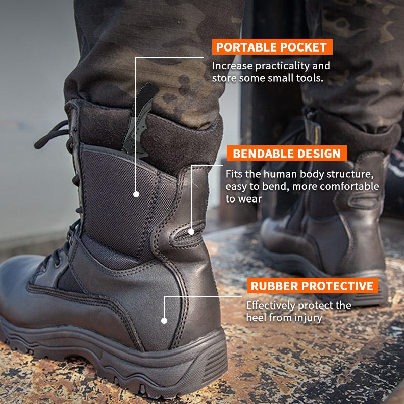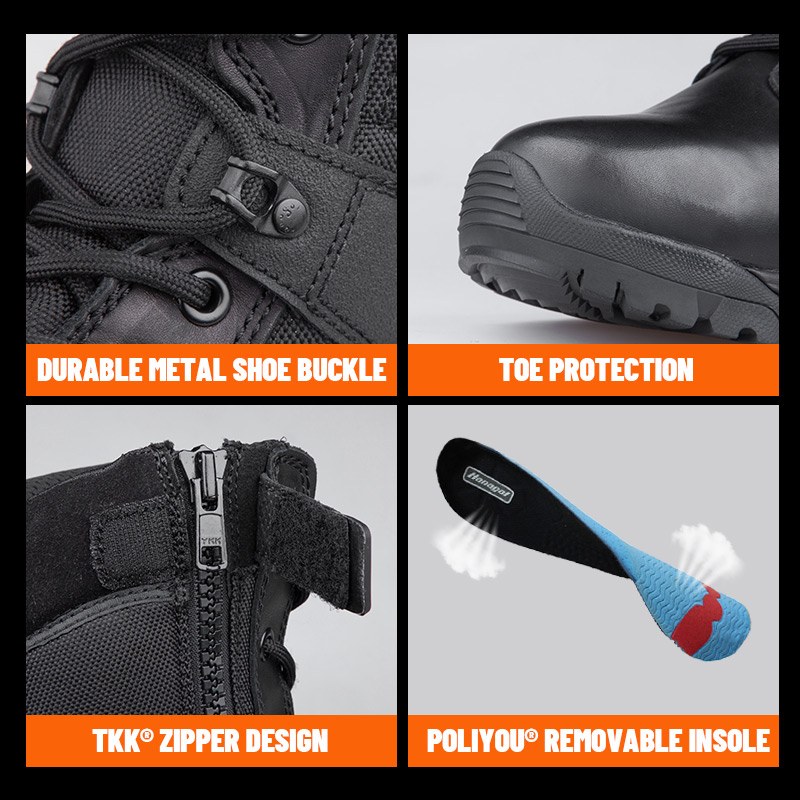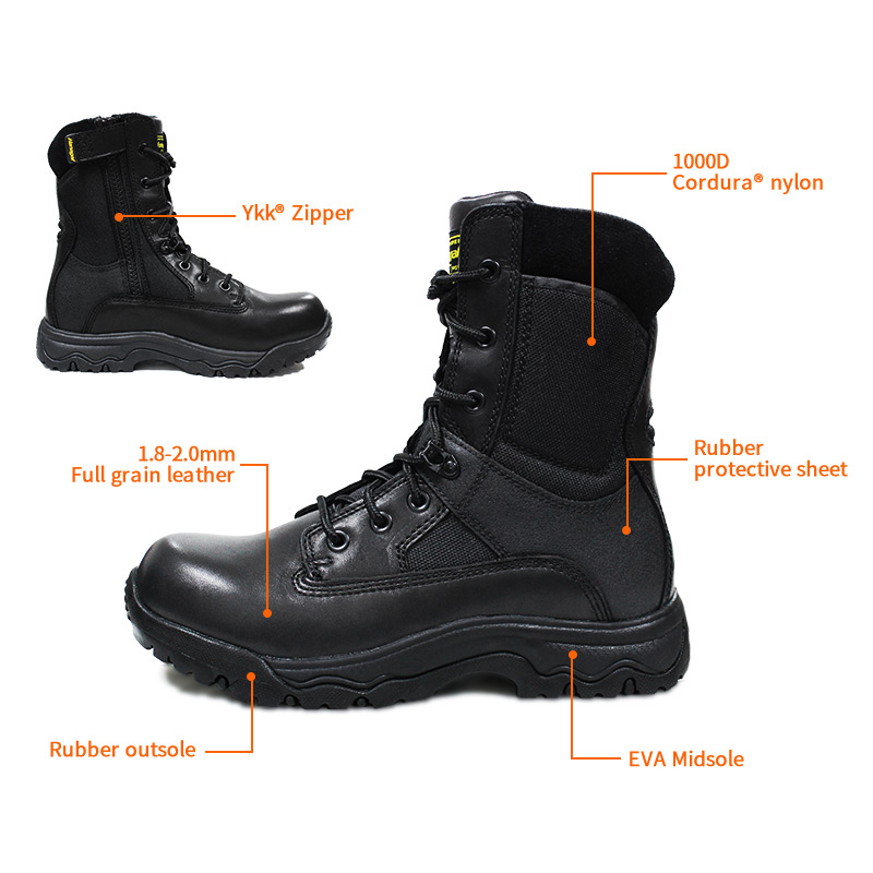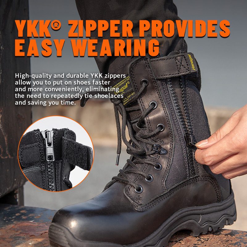 Šiuos YKK odinius policijos batus su užtrauktuku galima pritaikyti pagal spalvas, medžiagas ir detales. MOQ yra 800 porų, idealiai tinka bendradarbiauti su prekės ženklais ir grupiniams pirkimams. Ir šie medžiokliniai batai turi šiuos privalumus: